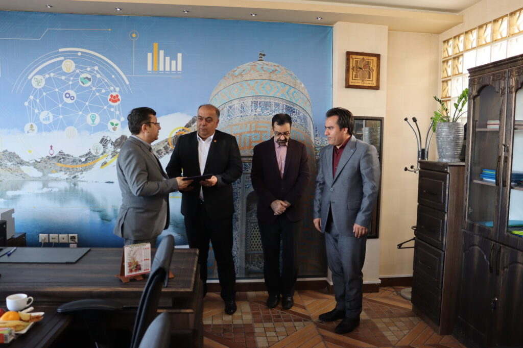 نشست مدیر عامل صندوق پژوهش وفناوری استان اردبیل به همراه ریاست محترم پارک علم وفناوری استان و مدیر محترم تسهیلات و خدمات اهرمی صندوق نوآوری و شکوفایی ریاست جمهوری با مدیران شعب بانک های ملت و تجارت استان در جهت هم فکری و ارائه راهکار های متنوع در جهت تأمین مالی شرکت های دانش بنیان اردبیل در محل پارک علم وفناوری استان اردبیل برگزار شد. و در پایان جلسه و به پاس قدردانی از زحمات مدیران این بانک ها از ایشان تجلیل به عمل آمد.